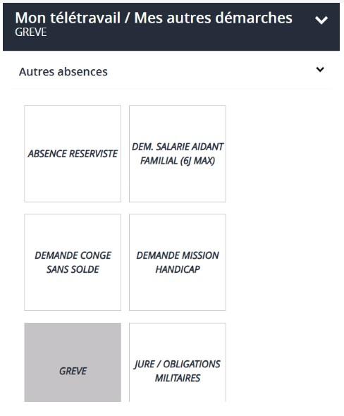 La déclaration d’un jour de grève se fait directement dans MyHR4you, dans la rubrique « Mon télétravail / Mes autres démarches » :