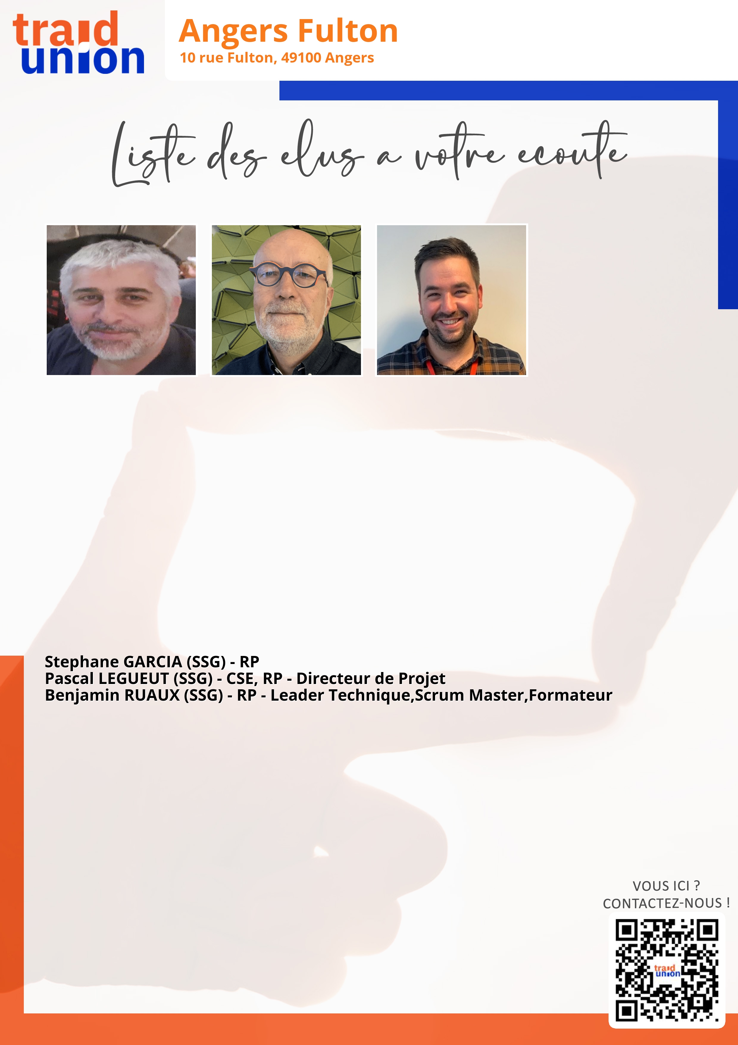 Vos élus à Angers Fulton 10 rue Fulton, 49100 Angers M. Stephane GARCIA (SSG)M. Pascal LEGUEUT (SSG)M. Benjamin RUAUX (SSG) Imprimer la liste des élus(recto) Imprimer la liste des élus(verso) [DISPLAY_ULTIMATE_SOCIAL_ICONS] Trouver UES Groupe1UES Groupe1
