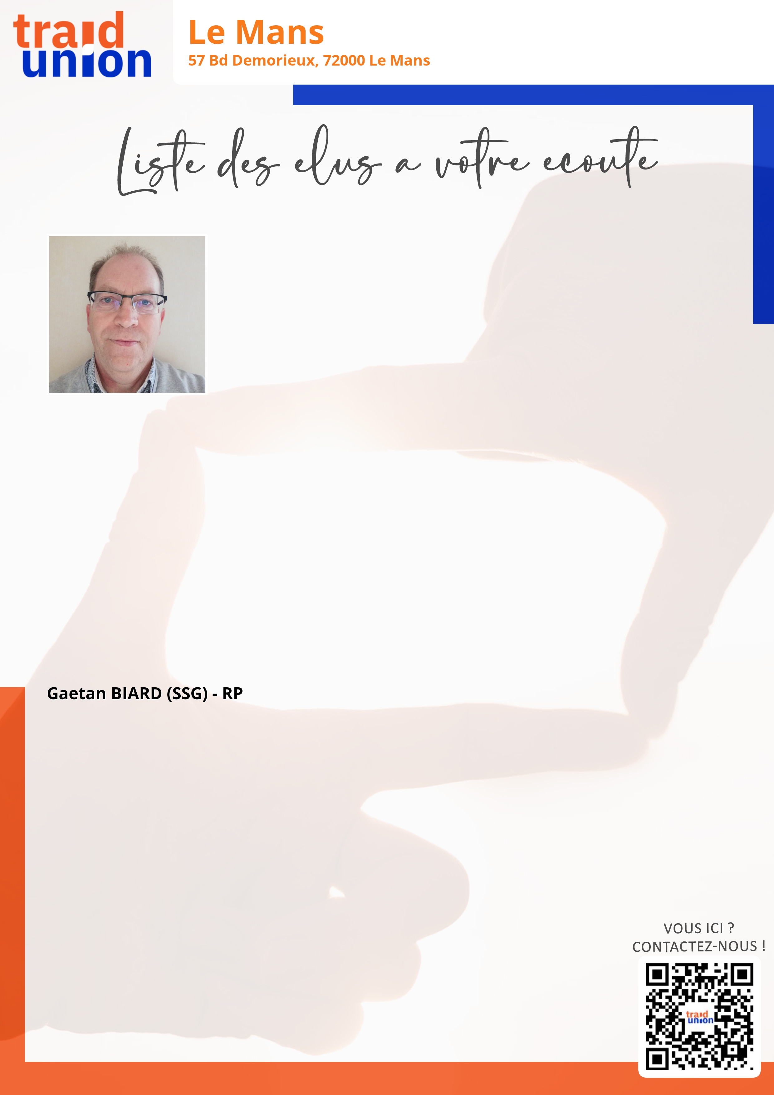 Vos élus à Le Mans 57 Bd Demorieux, 72000 Le Mans M. Gaetan BIARD (SSG) Imprimer la liste des élus(recto) Imprimer la liste des élus(verso) [DISPLAY_ULTIMATE_SOCIAL_ICONS] Trouver UES Groupe1UES Groupe1