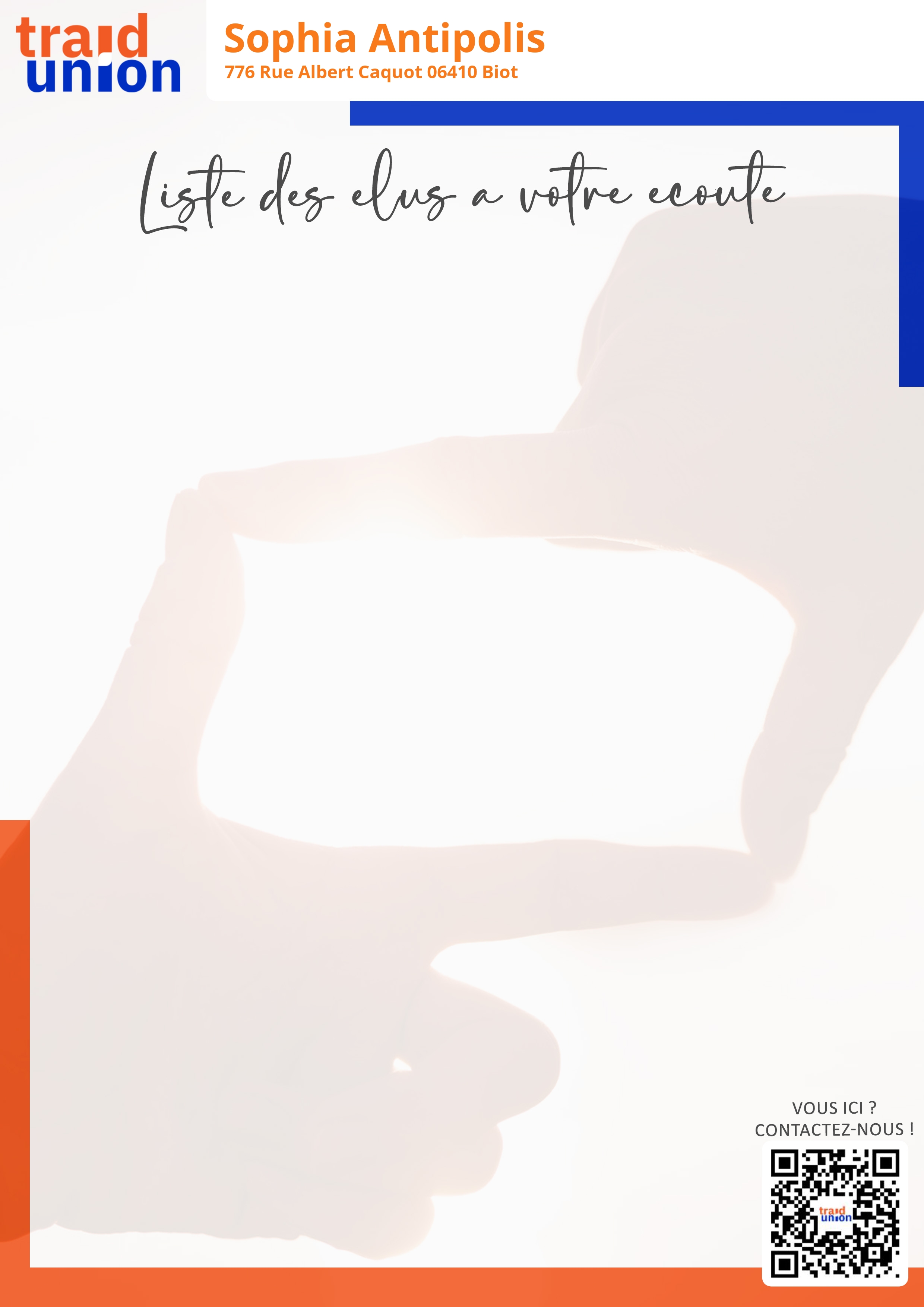 Vos élus à Sophia Antipolis 776 Rue Albert Caquot 06410 Biot Mme Karen BOURDOIS (I2S)Mme Veronique BRUNETTO (SSG)M. Nassim JALAL (SSG)M. Thomas MARIN (I2S)M. Stephane ROLLAND (SSG) Imprimer la liste des élus(recto) Imprimer la liste des élus(verso) [DISPLAY_ULTIMATE_SOCIAL_ICONS] Trouver UES Groupe1UES Groupe1
